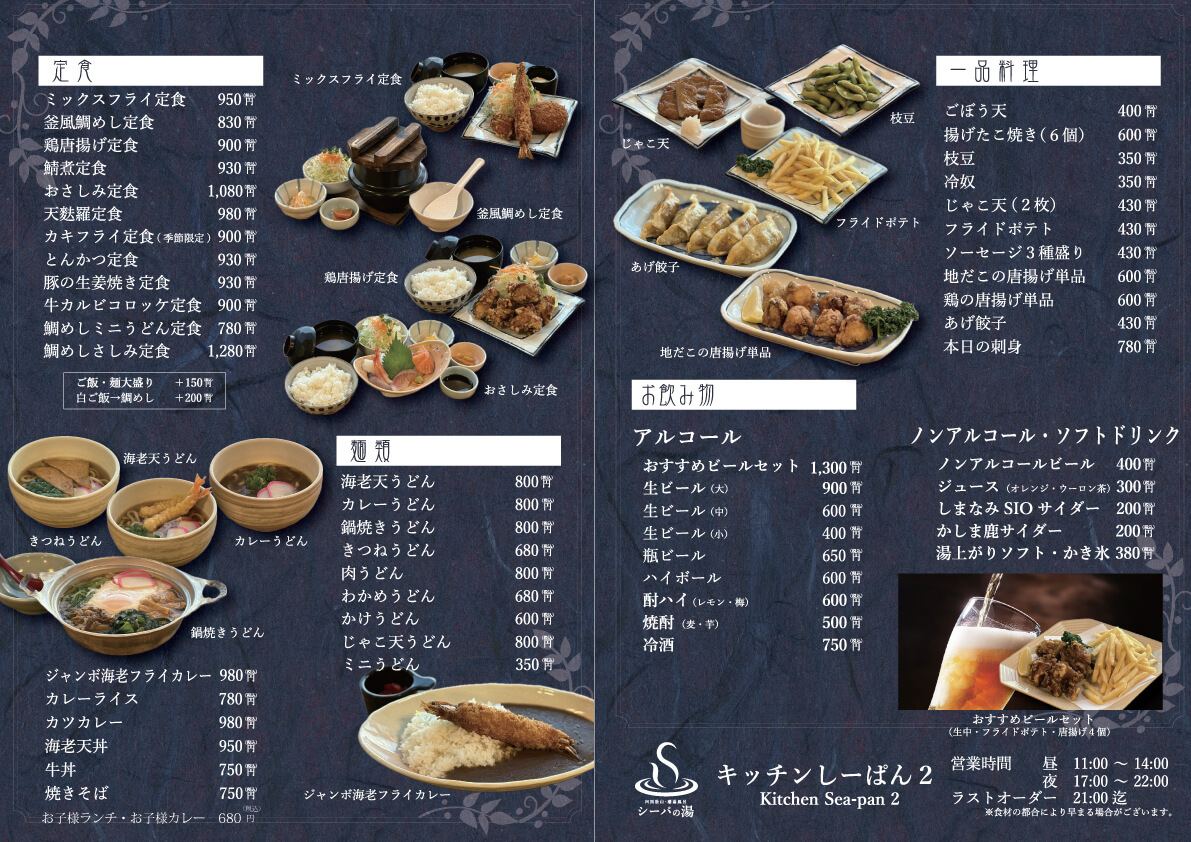 お食事のメニュー表は下記よりご覧ください。